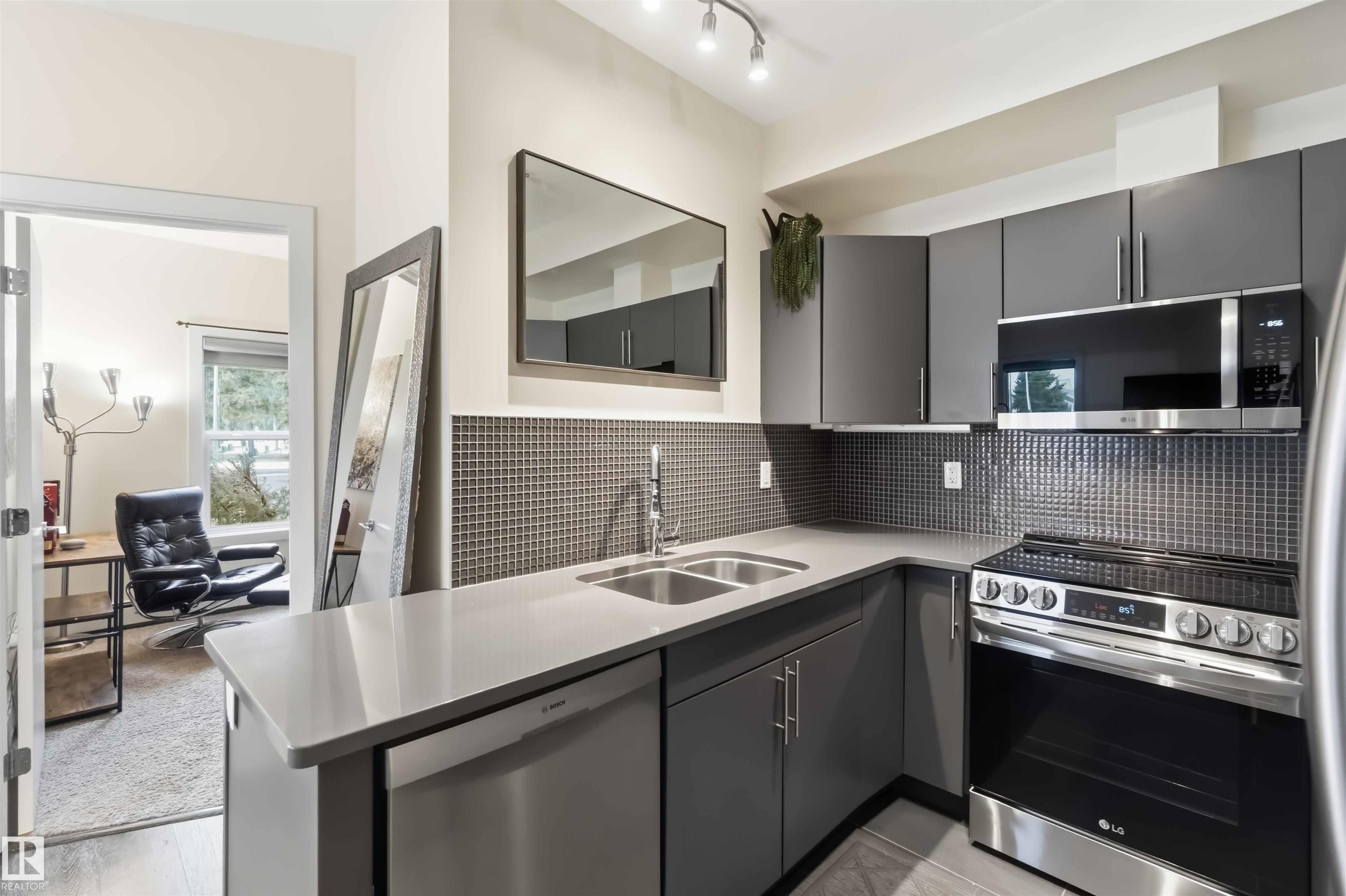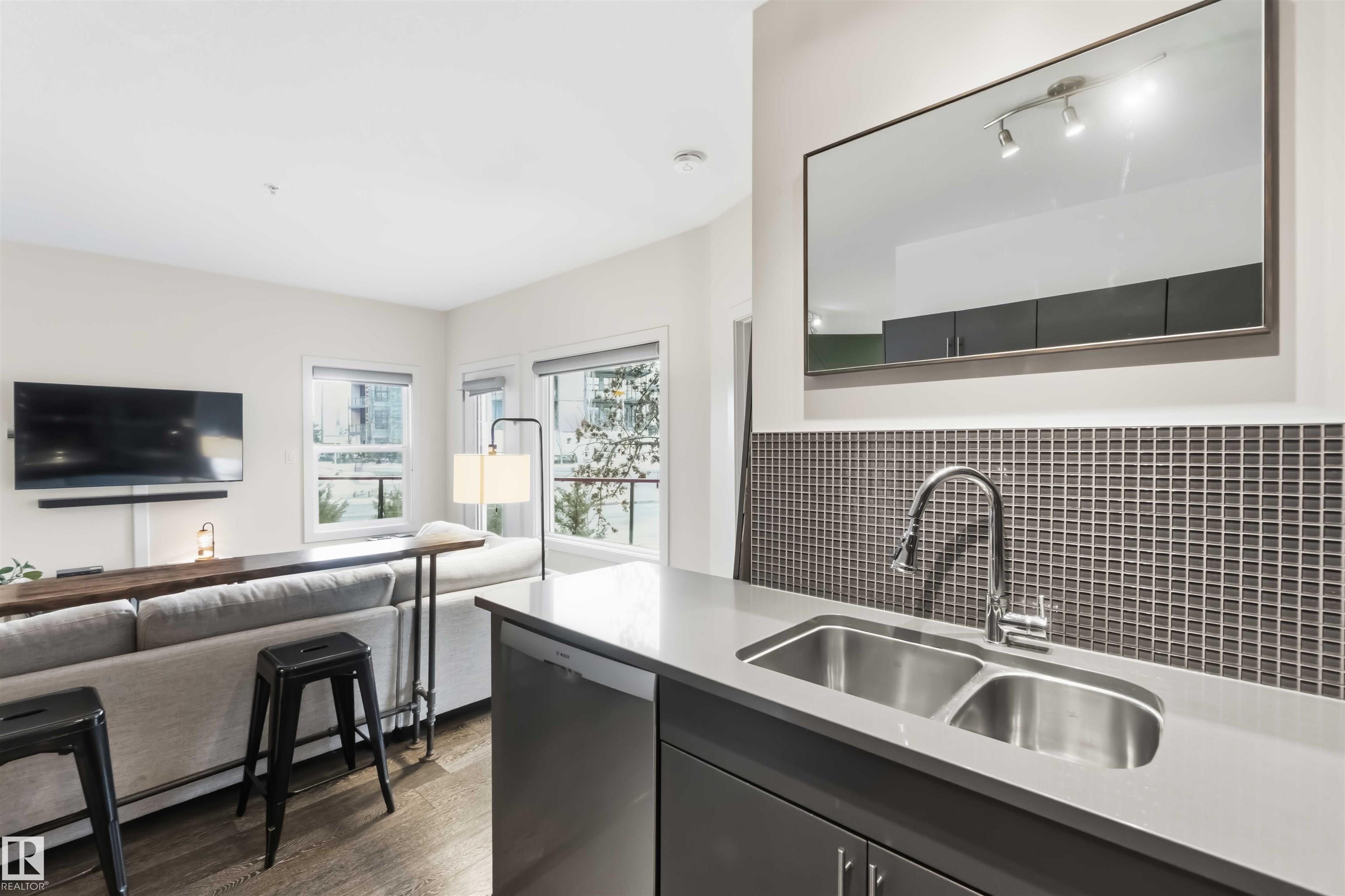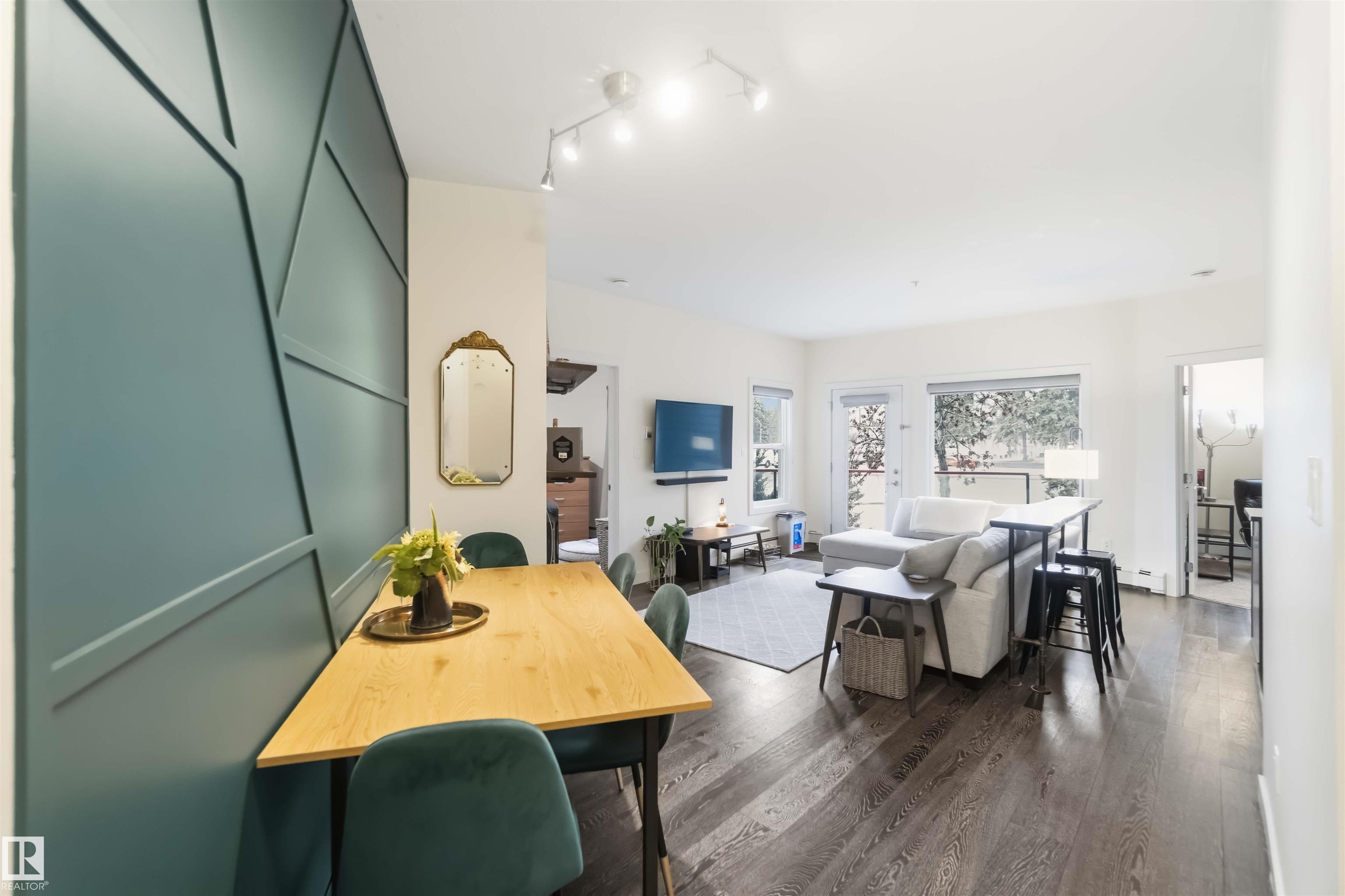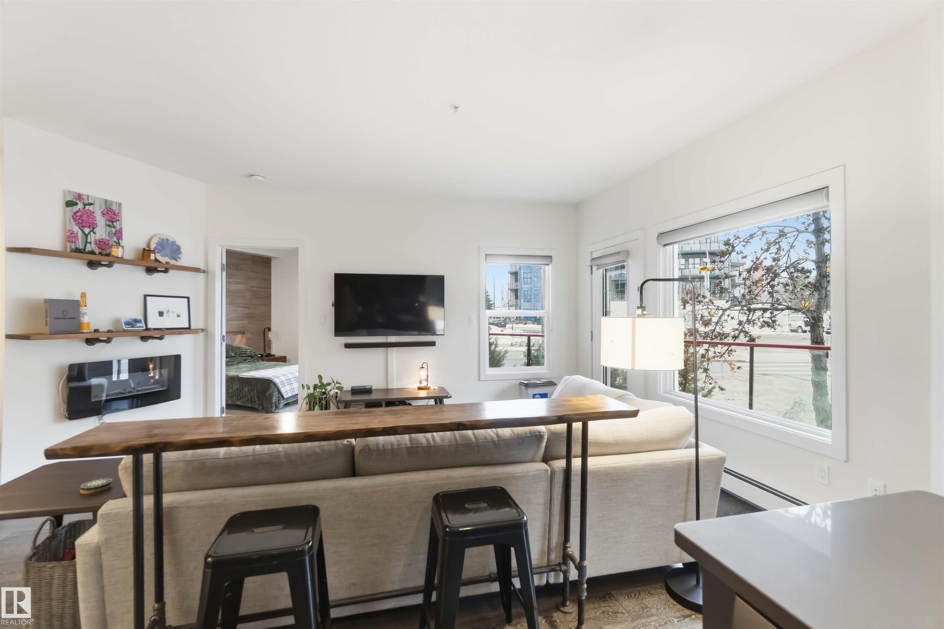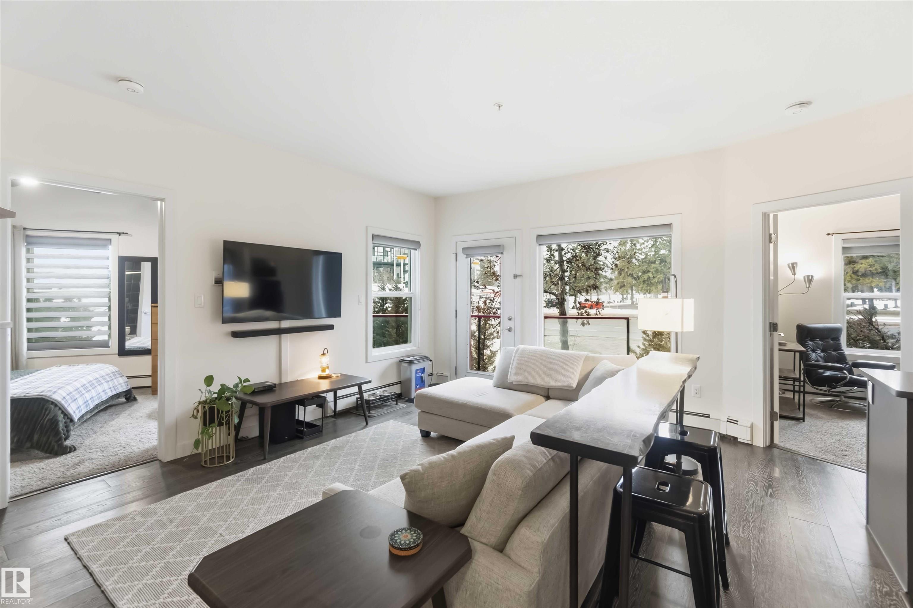 WELCOME to Unit 114 in Studio Ed! This main floor corner unit offers the perfect blend of comfort, style, and urban convenience. The building features an unbeatable central location just minutes from downtown and offers quick access to transit, Unity Square, Brewery District, MacEwan, Nait, and Rogers Place! Step inside to a bright, open-concept layout featuring 2 bedrooms and 2 bathrooms, 9-foot ceilings, large windows, and a functional design that maximizes every square foot. The kitchen is well-appointed...