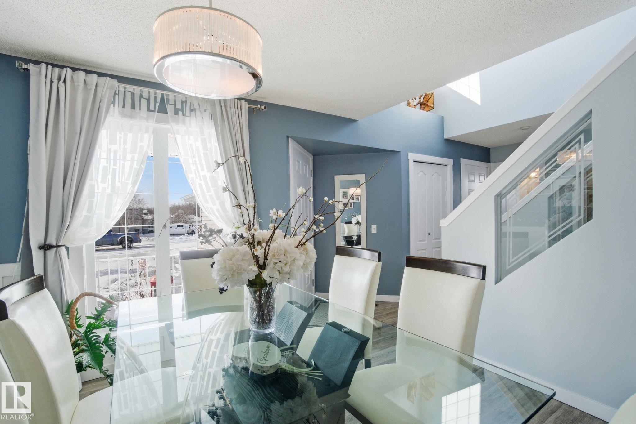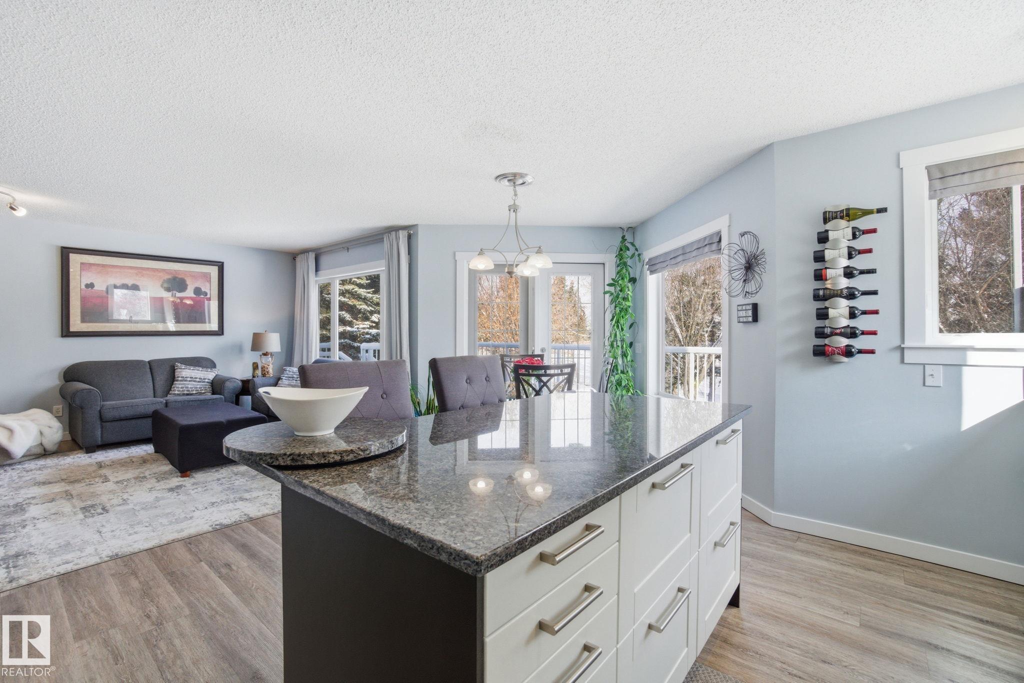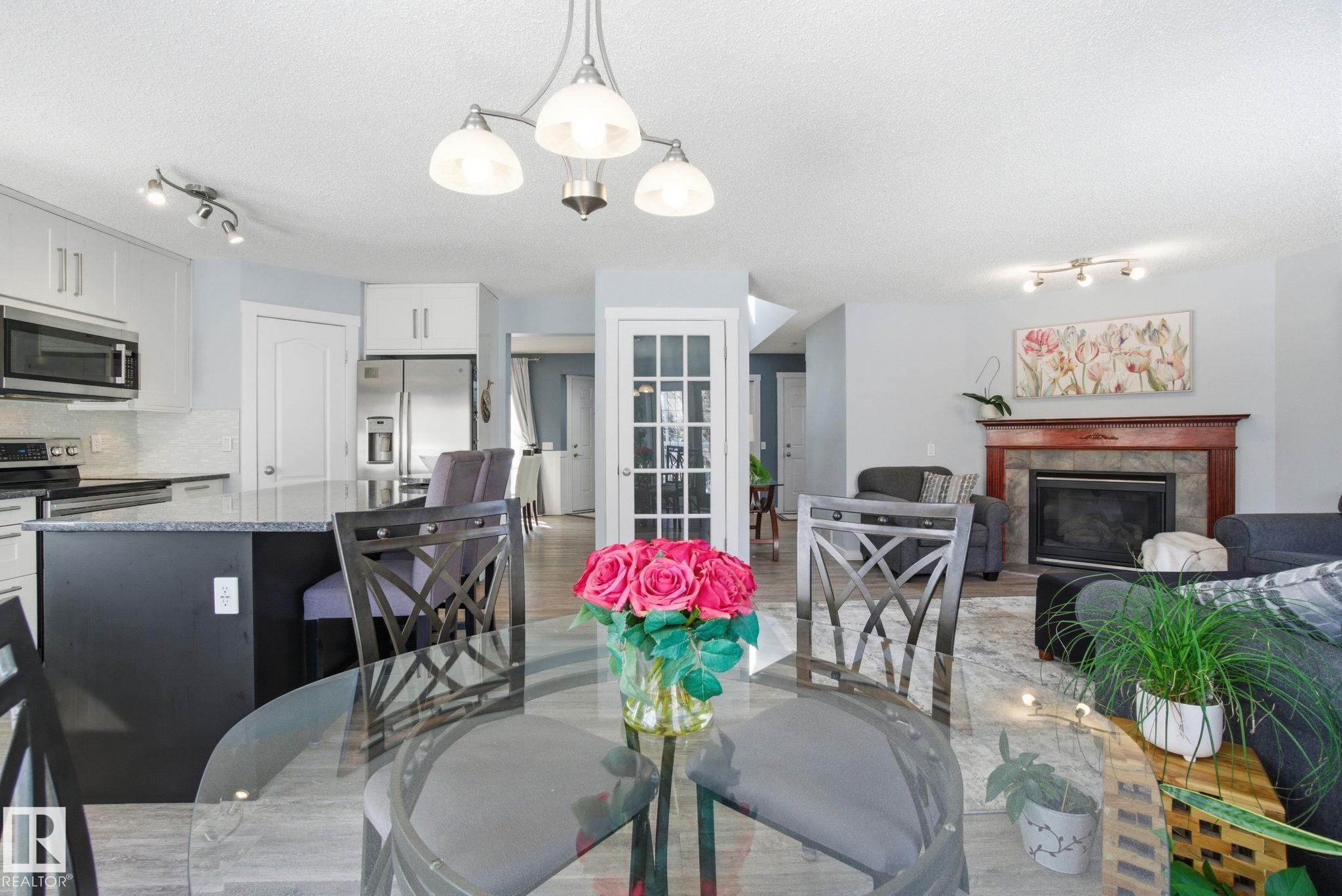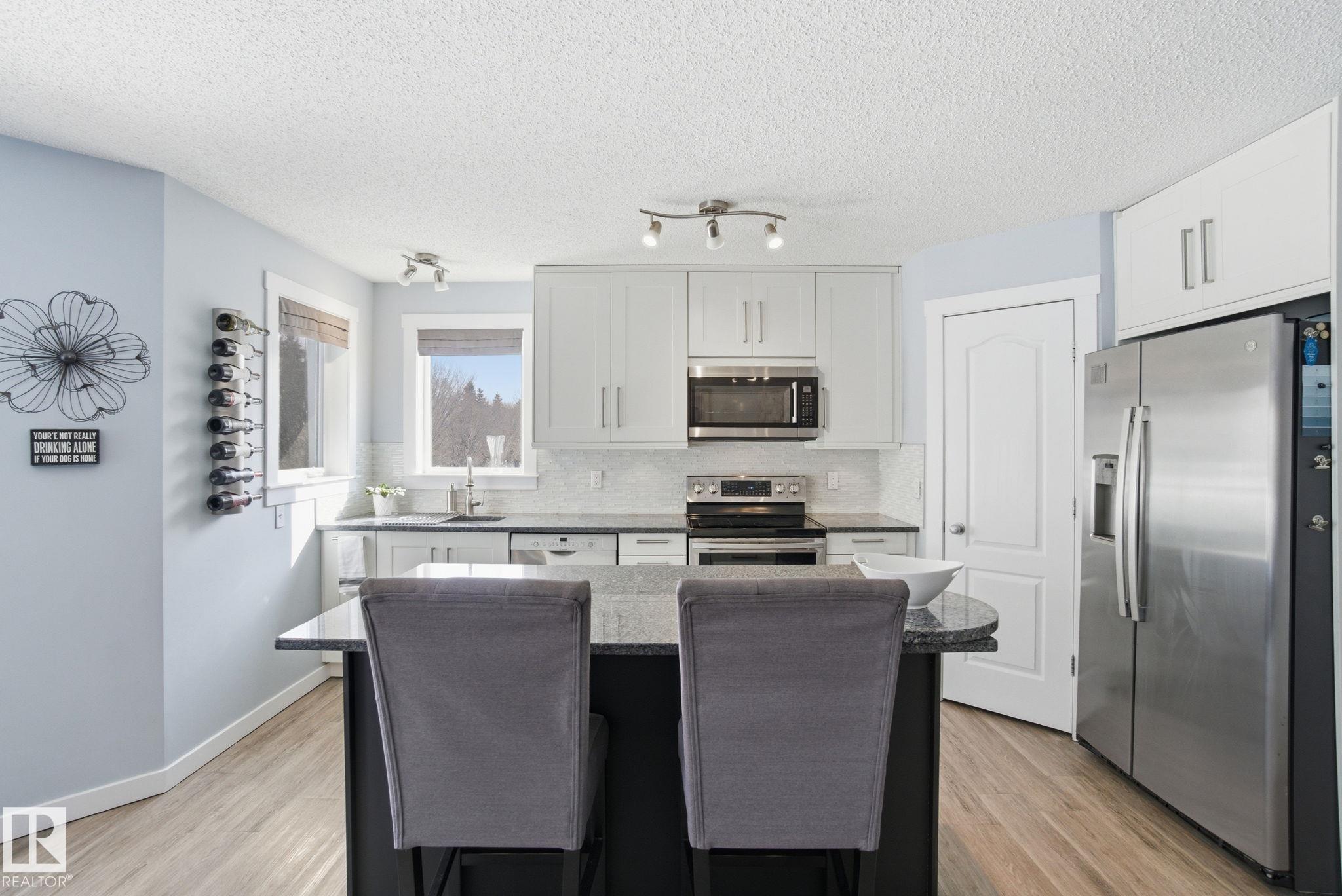 Beautiful WALKOUT 2-storey BACKING the GOLF COURSE in Stony Plain! Over 1500 sq ft PLUS fully finished basement. 18' ceilings greet you as you enter. Front flex room could be a great dining space, home office or formal living room. NEW kitchen is gorgeous with beautiful white cabinets, quartz countertops, corner pantry & updated appliances! Great breakfast nook with room to expand for guests! Large living room for more entertaining with gas fireplace. Tons of natural light through the windows looking onto t...