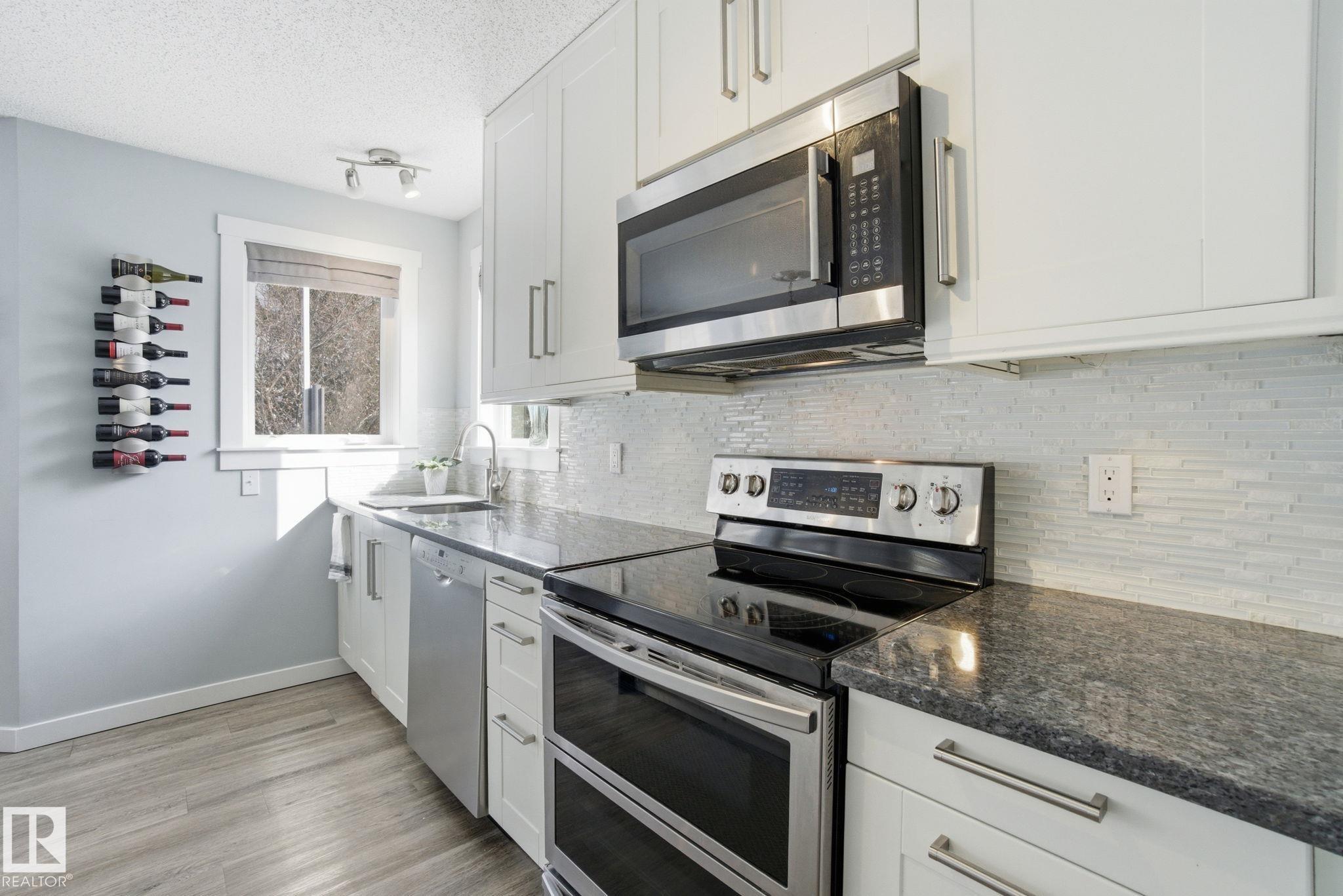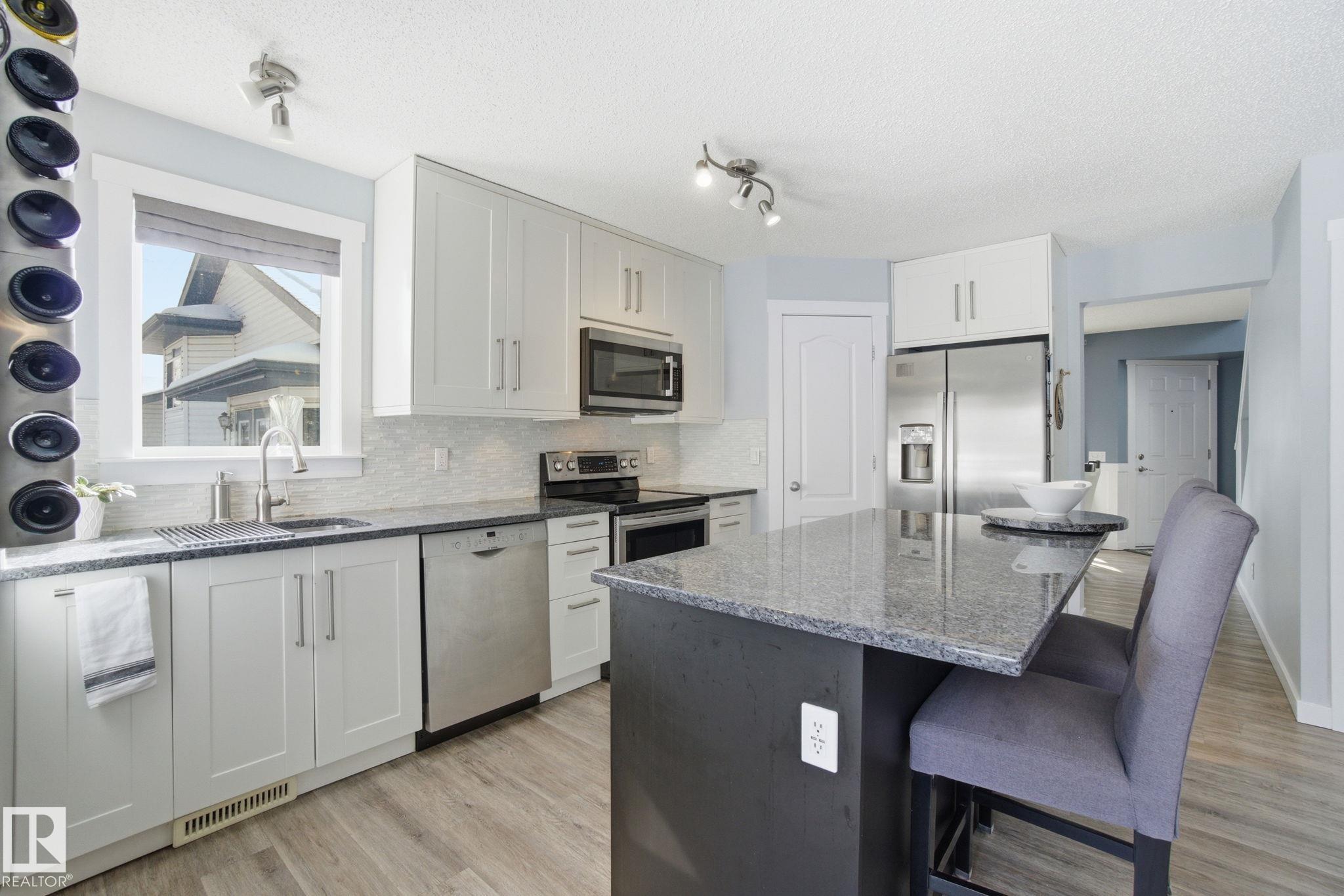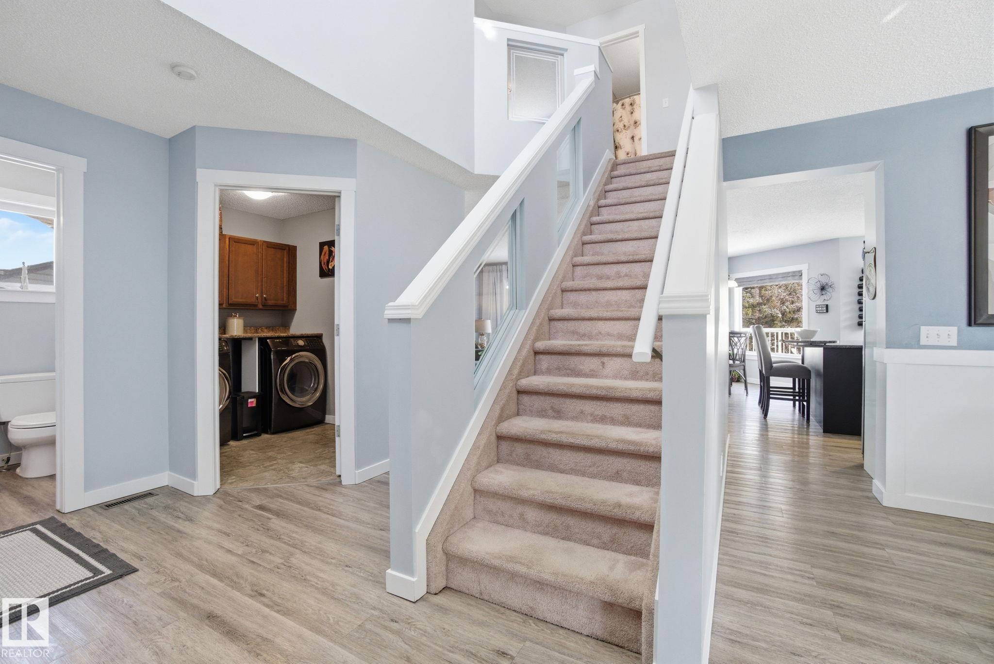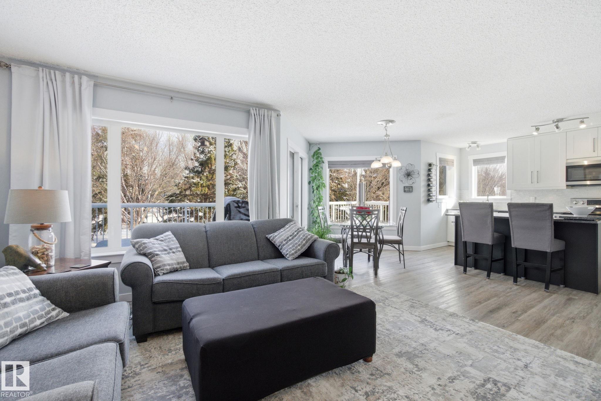 Beautiful WALKOUT 2-storey BACKING the GOLF COURSE in Stony Plain! Over 1500 sq ft PLUS fully finished basement. 18' ceilings greet you as you enter. Front flex room could be a great dining space, home office or formal living room. NEW kitchen is gorgeous with beautiful white cabinets, quartz countertops, corner pantry & updated appliances! Great breakfast nook with room to expand for guests! Large living room for more entertaining with gas fireplace. Tons of natural light through the windows looking onto t...