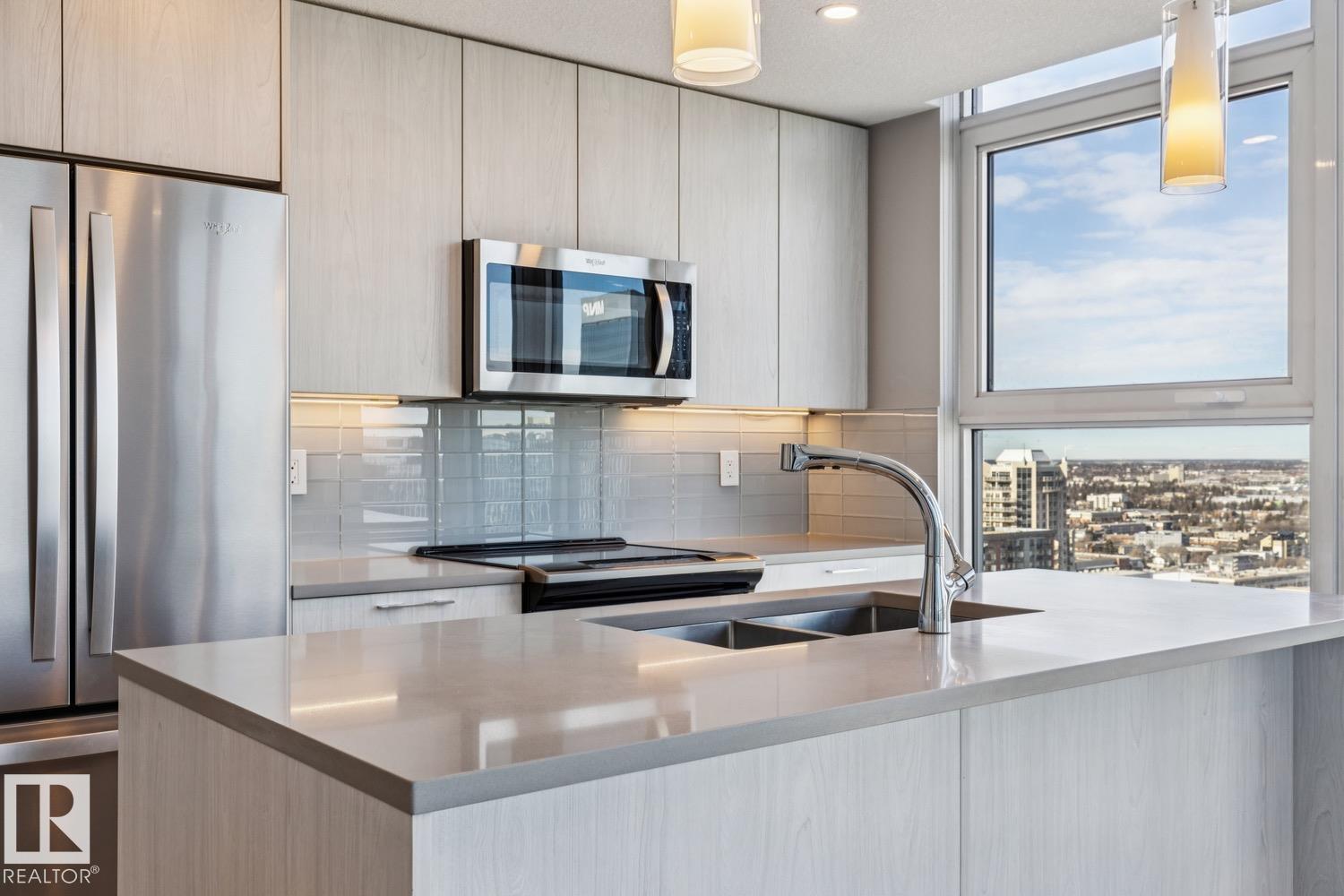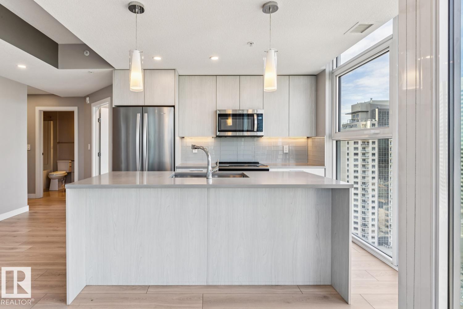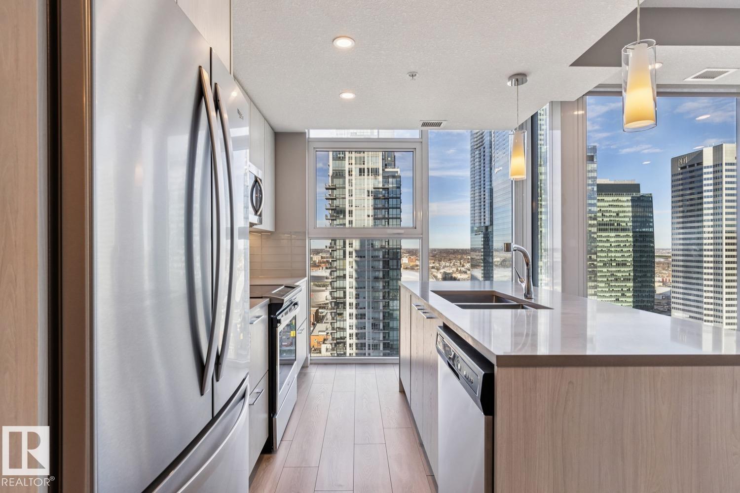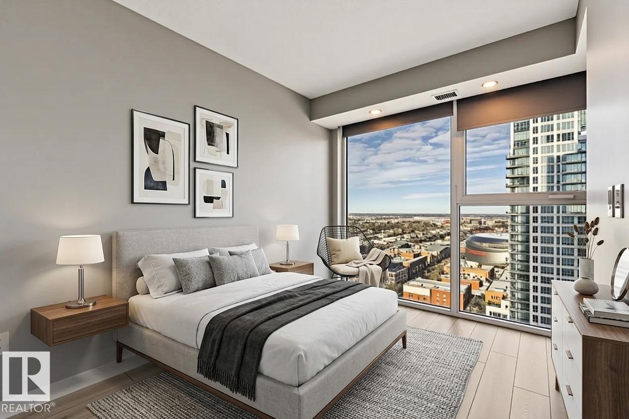 Location, Location! Encore Tower - Modern 2 Bedroom, 2 Full Bathroom Corner Suite with some of the best Downtown views the city has to offer! Enjoy true floor-to-ceiling windows, an efficient split-bedroom design and private sheltered balcony with plenty of morning sunshine. Appreciate durable finishes throughout - sleek quartz counters, plank-style floors bright and tidy tub-surrounds and neutral roller shades (w/ black-out shades in bedrooms). Modern design includes a stylish kitchen with full-size Whirl...
