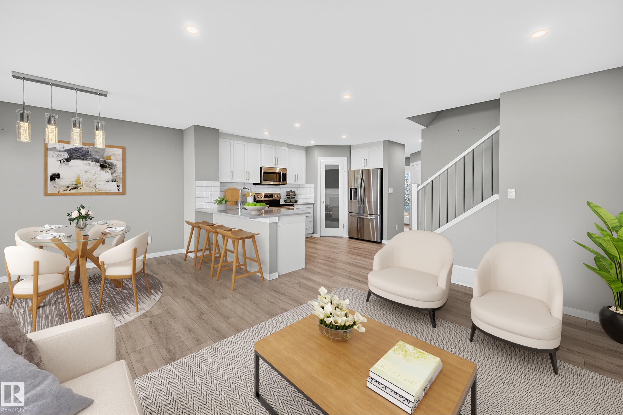 NO CONDO FEES – welcome to Woodbend! Open-concept living meets modern design in this stunning 3 bdrm + 4 bath duplex. Lovely curb appeal & bright entryway welcomes you into the home. Spacious kitchen features beautiful white cabinetry w/ quartz countertops, subway tile backsplash & corner pantry. The living room space is all set for your wallmounted tv (w/recessed HDMI) or art above the electric “Fire and Ice” fireplace. The bright dining room leads out onto the large 10x12 deck & fully-fenced & landscaped ...