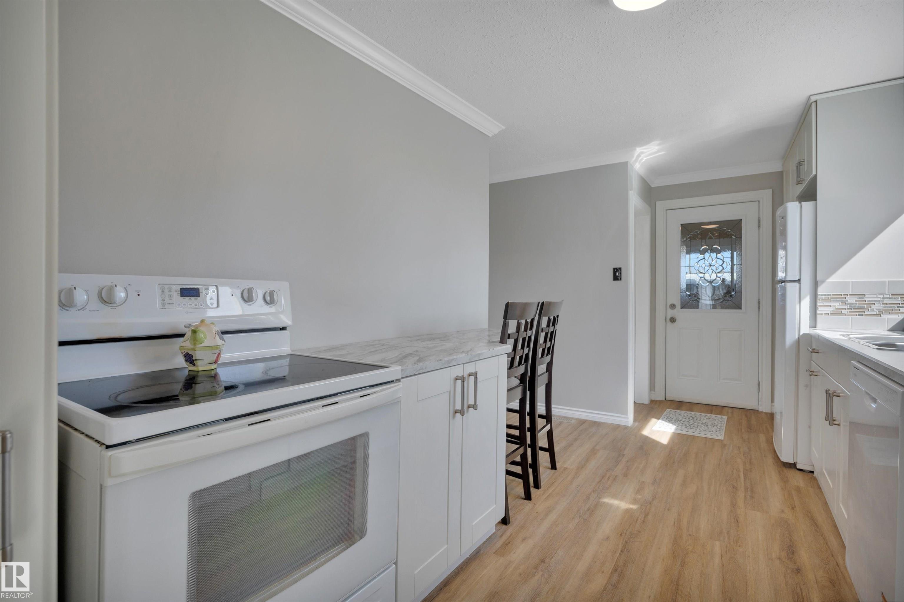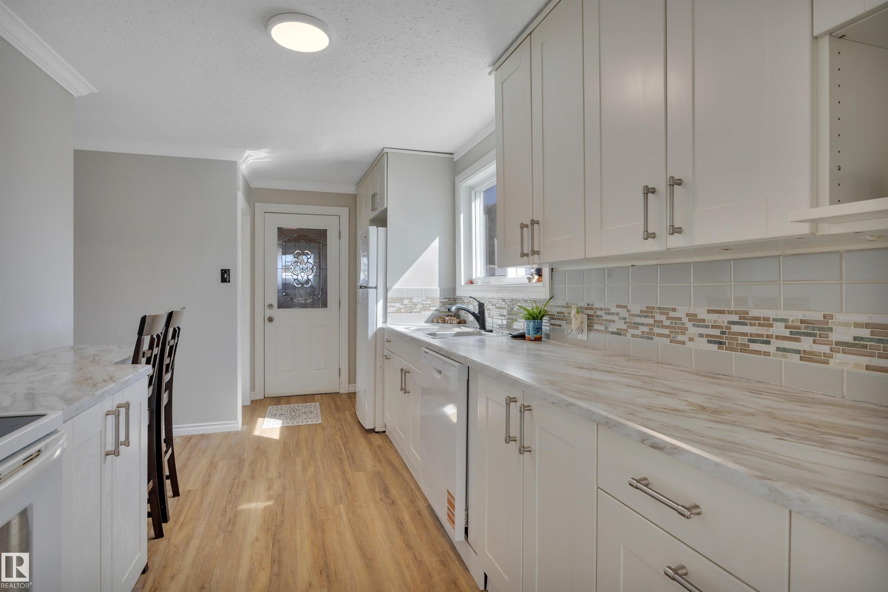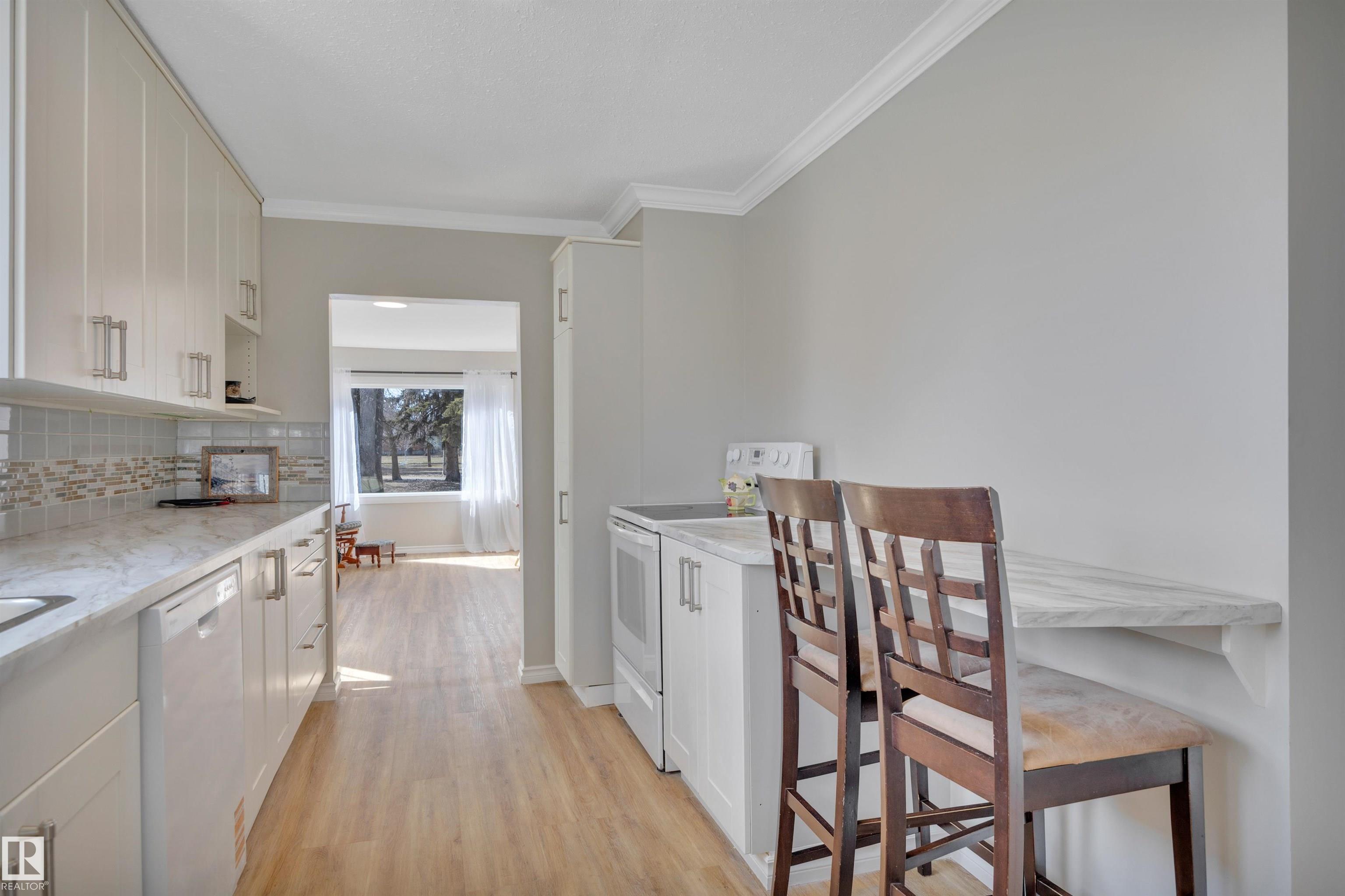CUTE AS A BUTTON! Searching for that move in ready home on a budget? This 2 bed, 1.5 bath RENOVATED home has been tastefully refreshed with several upgrades! Feat: new vinyl plank flooring, paint, lighting, insulation, bathrooms, kitchen, some cabinetry, countertops, side deck, newer vinyl windows & shingles & more! Mudroom leads into a galley style kitchen w/ tons of countertop space for cooking up a storm! Living / dining space with large windows & views of Ashoro Park! Primary bedroom w/ 2 pce ensuite & ...