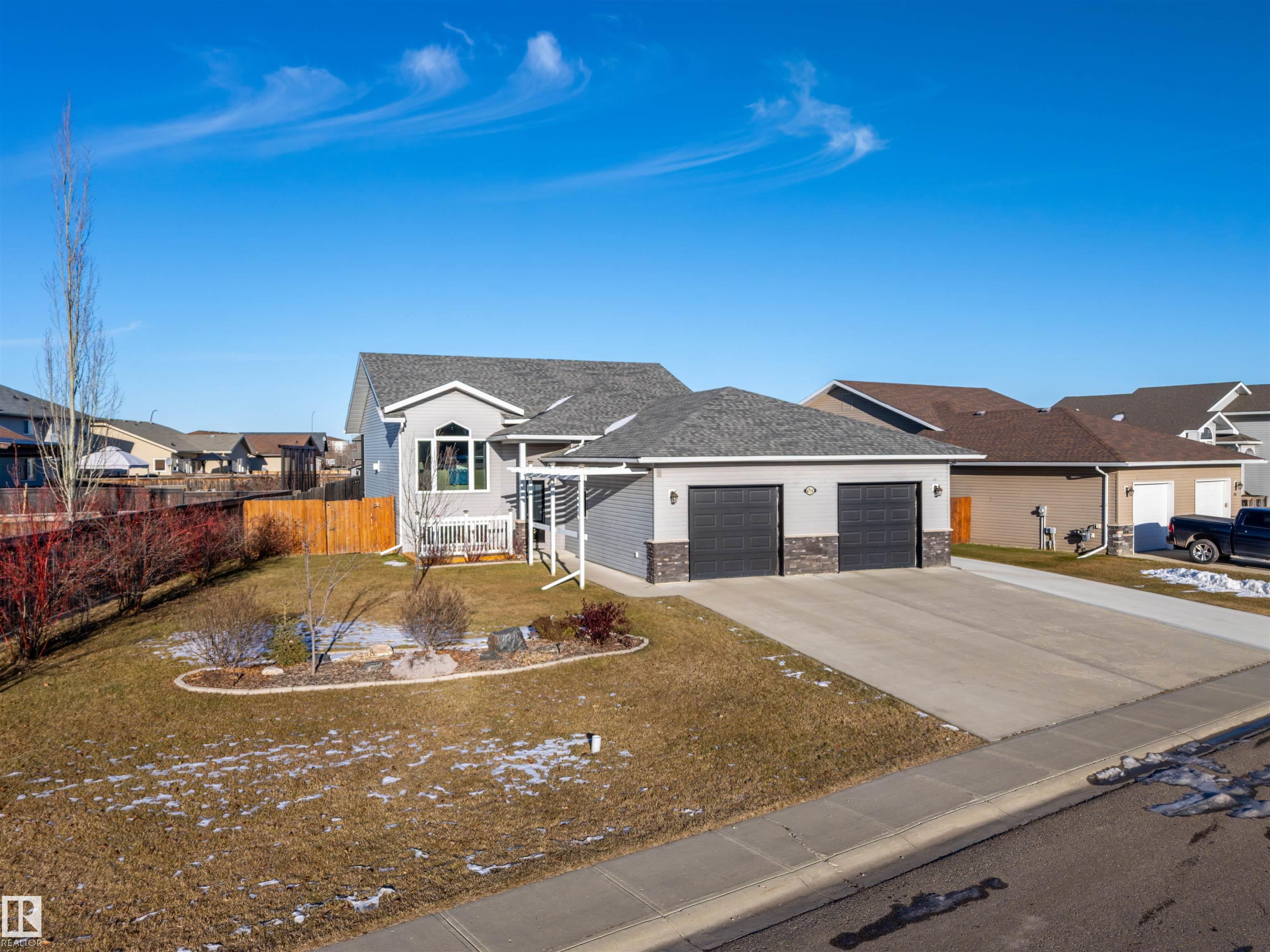Welcome to this beautifully updated family home featuring a charming front porch, an oversized heated double attached garage, plus a 32x30 heated detached shop with 220V, radiant heat, and RV plug-in. Centrally located in Cold Lake and close to all amenities, this home offers an open-concept layout with vaulted ceilings, engineered hardwood, and a spacious eat-in kitchen with maple cabinets, Cambria counters, pantry, and new tiled backsplash. The main floor includes three bedrooms, including a primary with ...