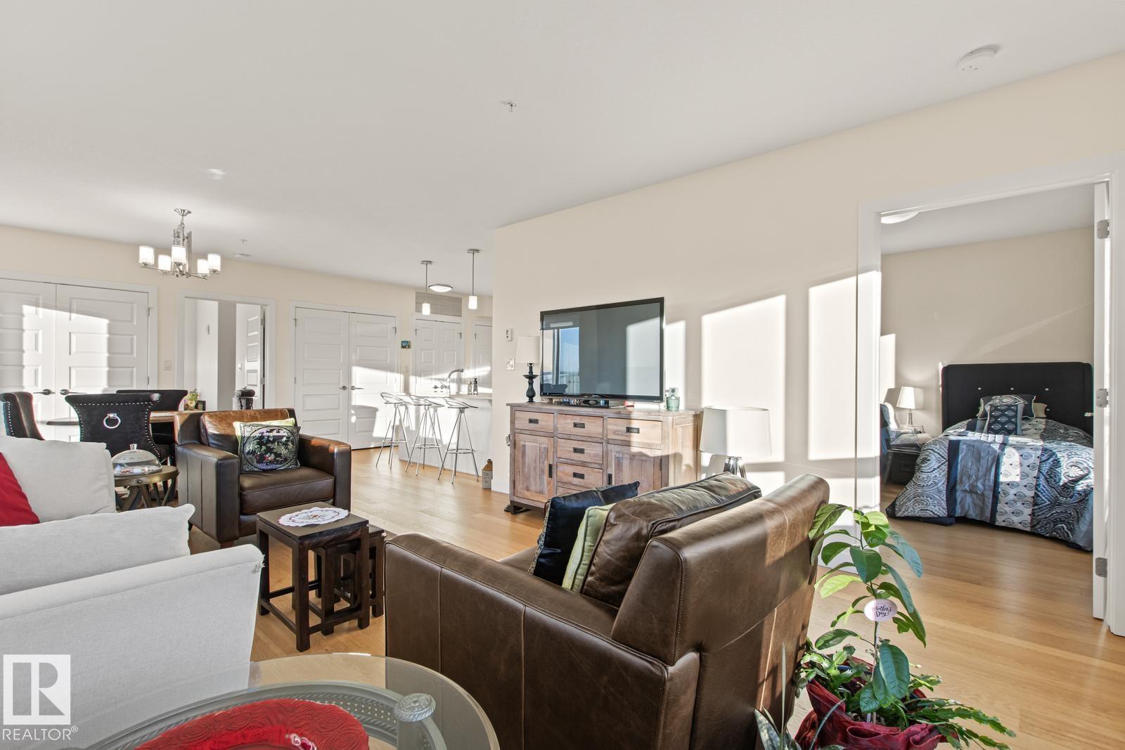 Stunning SW corner unit in this sought-after adult community offers breathtaking park & sunset views through expansive windows. Bright, modern & meticulously maintained — like new with only one previous occupant. Open-concept living features quartz counters, glass tile backsplash, breakfast bar, undercabinet lighting & SS appliances w/ drawer dishwasher. Engineered wood floors & neutral tones throughout. Primary suite can accommodate a king bed, has a walk-in closet & spa-like ensuite w/ heated tile floors,...
